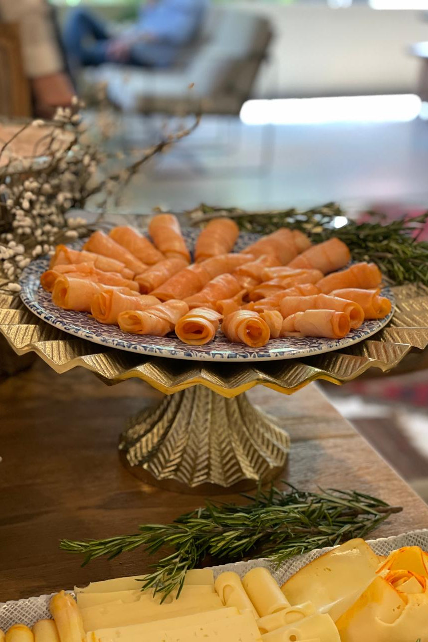 El pedestal decorativo dorado es una creación de Tierracota Home, donde el arte de recibir se convierte en un gesto lleno de belleza y alma.