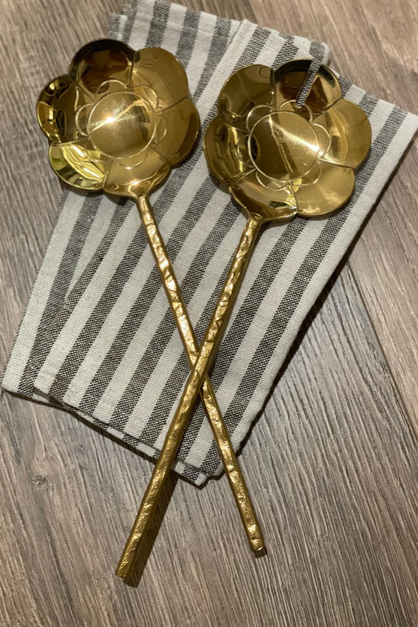 Añade glamour y estilo a tu mesa con este set de cucharas doradas, diseñadas con un elegante acabado martillado y un espectacular cuenco en forma de flor. Son piezas que combinan belleza y funcionalidad, ideales para servir ensaladas, guarniciones o lucir en ocasiones especiales.